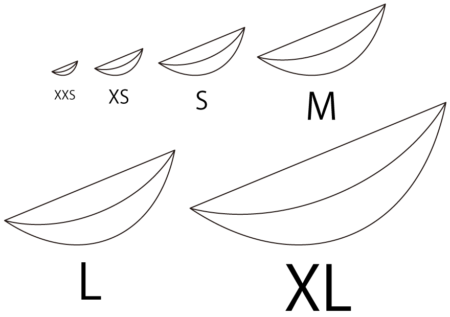 5種類あるシェイプは円と壁に対する角度が元となっていて、それぞれ保持感が異なります。22.5が最もポジティブです。大きさは6サイズに展開しています。 その他オプションも選べます。詳細はメニューのHoldsより。
